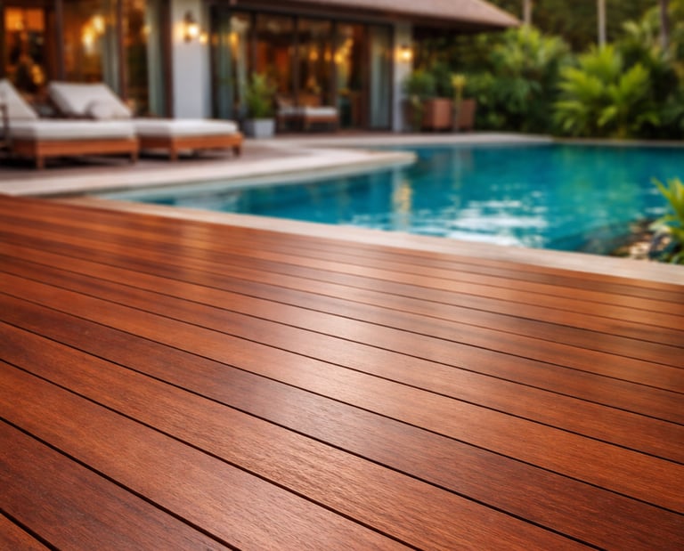 Merbau is prized for its deep reddish tones, high density, and natural oils. It offers exceptional dimensional stability, slip resistance, and lifespan, even in extreme weather and heavy-use areas.